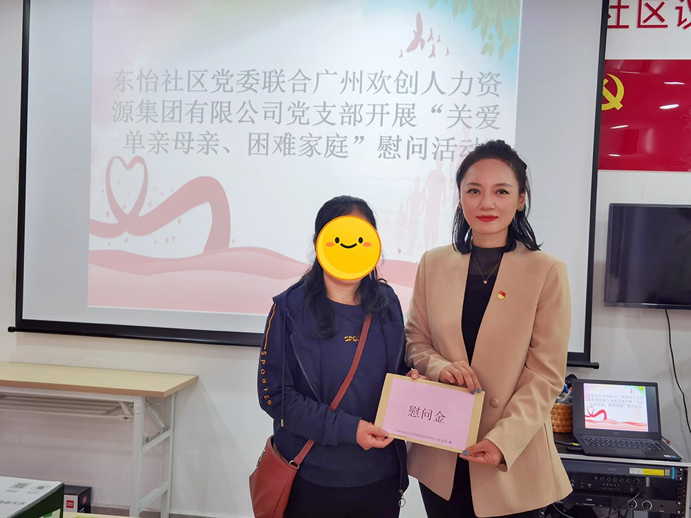 在三八国际妇女节来临之际,欢创集团党支部联合东怡社区开展“关爱单亲母亲困难家庭”慰问活动,为困难家庭送上温暖和节日祝福,把“娘家人”的关爱送到困难家庭的心坎上。